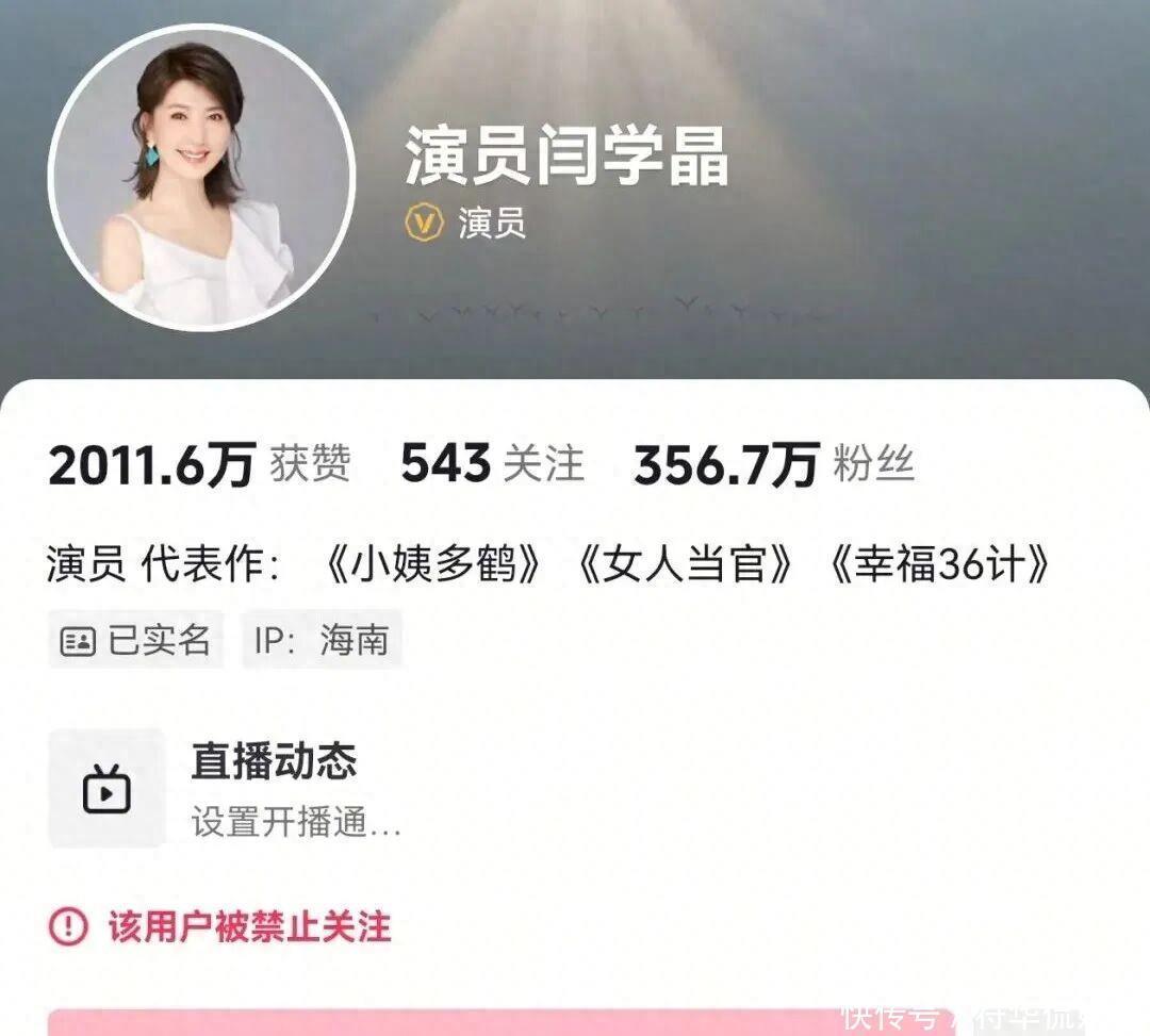 1月10日,记者发现,闫学晶的抖音、快手等平台账号被禁止关注。