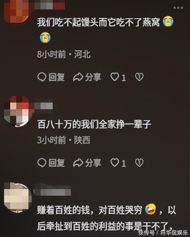 若是她跟小沈阳这类同行抱怨“儿子年入几十万不够花”,对方大概率能感同身受。毕竟在他们的消费圈层里,几十万可能连买一辆代步车都不够,更别说支撑一个家庭的开销。他们身处同一阶层,对“金钱多少”的认知的一致,也能理解“不愿降低生活档次”的心态。但闫学晶的直播间里,大多是购买她代言的平价酱料的普通百姓,他们如何能理解“年入几十万还不够花”的烦恼?不妨算一笔账:按照闫学晶的说法,儿子一家每年需要百八十万才能维持运转,平均到每月就是七八万,每天的开销高达两三千元。这样的生活水准,早已远超绝大多数普通家庭的承受范围。当普通人还在为月薪三千如何养活一家人发愁时,有人却在抱怨年入几十万不够花,这在大众看来无疑是一种讽刺。大众难免会质疑:既然收入跟不上开销,为何不适当降低生活标准?明明是自己追求奢侈生活带来的压力,却要向为基本生计奔波的普通人诉苦,这本身就是一种傲慢与脱离群众。
